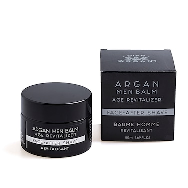 Argan Men Balm After-shave & Age Revitalizer is rich in vitamin E that soothes and moisturizes your skin after shaving ,Made from all-natural ingredients to replenish and energize your skin ,Giving your skin a soft, smooth feel with an oriental touch of sandalwood and ginger essential oil ,Gives unsurpassed cooling and a refreshing finish to your shave ,Calms and soothes irritated skin cause by shaving ,Moisturizes skin, leaving your freshly shaven face with a smooth healthy glow ,How to use: warm the balm between your hands and then apply to the skin of the face after shaving