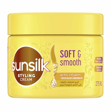 - Looking to moisturise and protect your hair from drynessroot to tip? Enjoy the divine pleasure of new Sunsilk activ-infusion soft styling cream, blended with protein builders and nourishing oils. The new super light Sunsilk Styling Cream is a delicious hair treat for smooth, soft hair. No matter the style. The nourishing formula smoothens your hair and softens it to balance the natural moisture of your tresses. Regain that lost shine and smoothness of your hair and feel its glossy texture again. Achieve smooth hair with every application of the styling cream! Best results when followed up with the use of Sunsilk Soft & Smooth shampoo and conditioner. The styling hair cream comes with revolutionary technology for more manageability than ever before. Natural, vibrant, full of colour and scents, Sunsilk stands shoulder to shoulder with you every step of the way. With almost 200 years of professional experience in each bottle, whether it’s curl management, volume boosting, damage control, straightening, smoothening or colour protection, you can count on Sunsilk to hit the mark in this endeavour. Sunsilk makes hair products you will enjoy trying, exploring, using and discovering. With Sunsilk by your side, take your hair styling game to the next level. Apply on lengths of washed, towel dried hair and style as usual. Do not rinse.