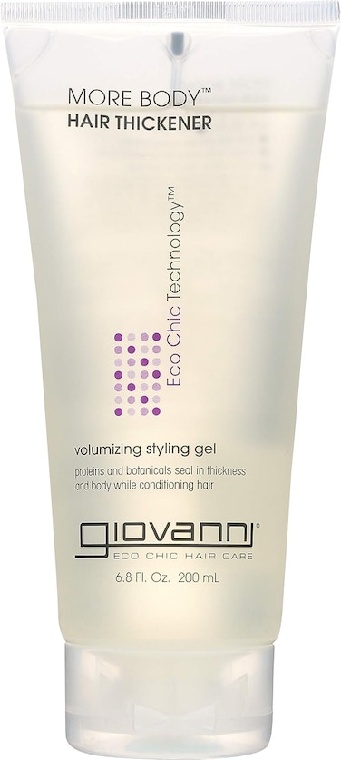 Giovanni More Body Hair Thickening Styling Gel is primarily a hair thickener and body builder for thin to medium hair but is also used as a multi - purpose styling gel Used in small amounts it is used as a hair perm lock It repairs the hair seals in color helps prevent color fading and also is an all - around nutrient which conditions and repairs split ends It is a must for all types of hair styling