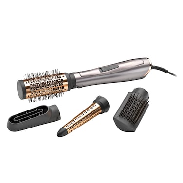 The BaByliss Air Style 1000 Hair Styler AS136SDE is a powerful 1000W hair styler in a sleek grey color.