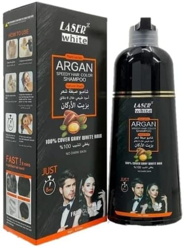 It gives your hair a healthy look and shine and covers it 100% in just 30 minutes. The best white hair dye shampoo with high quality and luxurious natural formula, there will be no side effects to your hair or scalp. Argan oil shampoo from Laser white contains a formula of argan oil that gives shine to your hair and aloe vera for intense hydration in addition to keratin that gives hair strength and makes it soft and thick. How to use: 1. Wear the supplied gloves, squeeze the shampoo pump. Mix the shampoo cream on the palm of your hand and apply the shampoo to your hair. Leave the cream on your hair for 30 minutes. Rinse your hair well with an adequate amount of water.