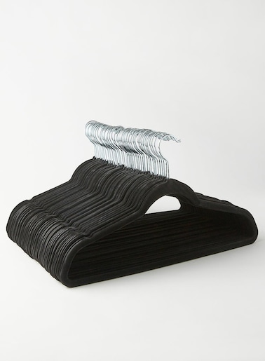 Switch 50 Piece Non-Slip Ultra Slim Velvet Multifunctional Hanger Set In Neutral Colour Made In Sturdy Material For Closet Organization, Black, 44.5X23.5cm