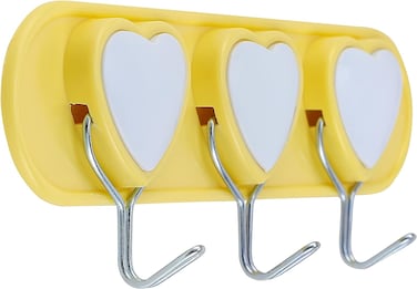Royalford Heart Self Adhesive Sticky Hook 3-Piece Hooks, Yellow/White