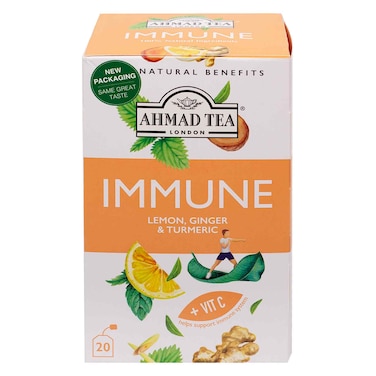 Ahmad Tea Immune Lemon Ginger and Turmeric Plus Vitamin C 20 Tea Bags