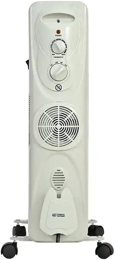 General Supreme Oil Electric Heater, 13 Fins, 2800 Watt Distribution Fan, White