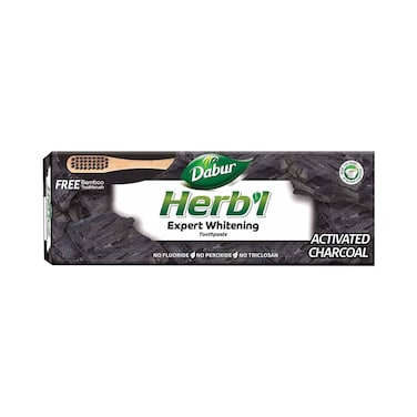 Dabur Herbal Activated Charcoal Whitening Toothpaste With Toothbrush Black 150g