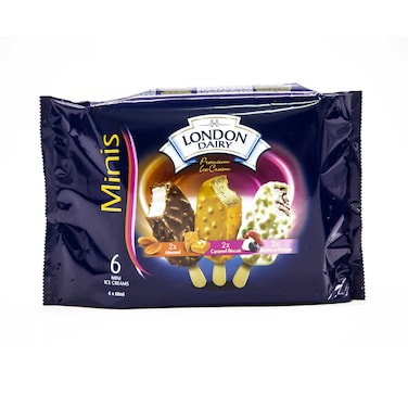 London Dairy Mini Sticks Assorted Ice Cream 60ml x6 (Almond, Caramel Biscuit, Berries N Cream)