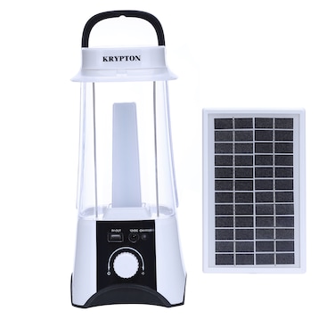 Krypton KNSE55345 Rechargeable Solar LED Emergency Lantern- Solar powered and rechargeable emergency light with 60 PCS Hi Bright LED's to give you bright light output and ideally serves the purpose when needed like travel, camping, light cut at home etc. Strong build quality of solar lantern using superior quality plastic material and effectively the solar powered emergency light gives 360 degree light output and lumens the entire area around. Ultra bright rechargeable led solar lantern with multi step rotary switch to control the light- flowing from dim to brightest point. Adjust the light of solar lantern according to your need which effectively increases the battery backup. Solar panel used in solar lantern is of high quality so to gain charge in cloudy weather and effectively helping battery to recharge. Charging indicator led depicts when solar lantern is being charged either by solar panel or USB charger.Other Features includeUSB OUTPUTSOLAR INPUT150 HOURS CONTINUOUS WORKINGOVERCHARGE PROTECTIONWITH SOLAR PANEL 12V 3W