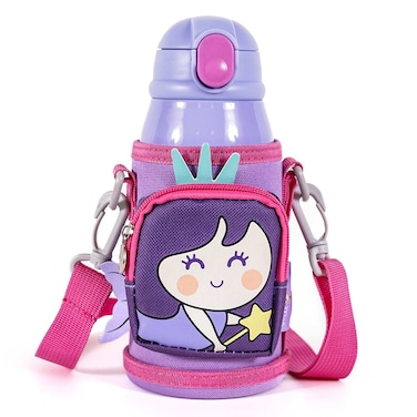 Thanks to the specially designed Mermaid water bottle by Milk&Moo, your little ones' beverage consumption will be even more enjoyable! The Mermaid steel kids water bottle is an ideal option for young children to carry and consume their healthy drinks. This bottle is made from durable and high-quality stainless steel material, keeping your beverage fresh and tasty.SAFE AND HEALTHY: This steel water bottle prioritizes your children's health by being made from materials free of BPA and other harmful chemicals. You can safely carry your beverage and ensure your child consumes their drinks in a healthy way.FUN AND COLORFUL BAG DESIGN: The product's stylish and fun design attracts children's attention while also being practical and convenient. With its lightweight structure, adjustable strap, and various color and pattern options to suit your child's style, the bag allows children to easily carry the bottle and keep their small belongings in the small zippered pocket.3 TYPES OF CAPS: The steel water bottle comes with three types of caps, making it convenient for your kids to consume both cold and hot beverages. The straw design allows easy consumption of cold drinks, while the thermos cap and cup design allow comfortable consumption of hot beverages.LEAK-PROOF CAP: The bottle's cap design is leak-proof, minimizing the risk of spills and leakage. This feature prevents liquid from seeping into the bag or onto other belongings.ECO-FRIENDLY: Designed to reduce the harmful effects of single-use plastic bottles. With this refillable water bottle, you decrease your impact on the environment and instill sustainable habits in your children.The steel kids water bottle with a bag is a perfect choice for taking to school, picnics, travels, or any outdoor activities. You can fill it with water, fruit juice, milk, or any other beverage.With the steel kids water bottle filled with healthy drinks, your child can safely consume their beverage.