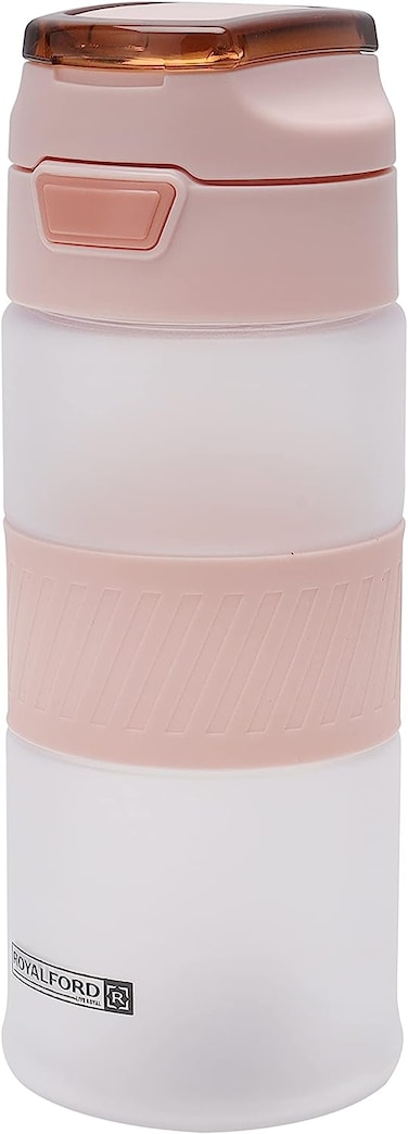 Royalford Water Bottle with Push Button Cap will add a dash of style to your gym bag or rucksack. Designed to provide a healthy way to enjoy your drink. Made from eco-friendly food grade material, BPA-free, odor-free, and can rest assured use. Wide opening for easy filling. Great for safe drinking, more durable and easy to clean. Perfect for workouts, work and everything in between home or for office.