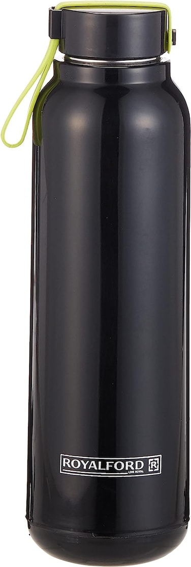 - <li>Royalford Insulated Water Bottle with 800 ml capacity<li>Highly durable and brushed stainless steel body<li>Attached silicon sealing ring to prevent leakage<li>Ideal for office, school, camping, hiking, etc<li>Preserves flavors and freshness<li>Product Dimensions: 9 x 9 x 28 cm, 290 Grams