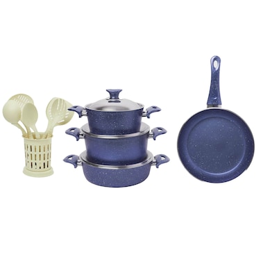 In House 13 Pieces Turkish Granite Cookware Set With Steel Lid - Blue