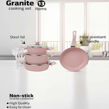 In House 13 Pieces Turkish Granite Cookware Set With Steel Lid - Pink