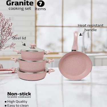 In House 7 Pieces Turkish Granite Cookware Set With Steel Lid - Pink