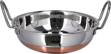 - <li>EFFICIENT - Heat conduction is faster, more energy-saving and time-saving, the bottom is thicker and more durable, will not be deformed, thin-walled heat conduction is fast, energy-saving, delicious, etc.<li>COMFORTABLE HANDLE - The Kadai has an anti-scalding handle and a hollow handle design, which is safe and anti-scalding, making it easier and more comfortable. The copper bottom is thickened and heated evenly and quickly, saving time and durable.<li>WIDE RANGE OF USES - Our kadai is a universal pot. It can be used for frying, boiling, stewing, roasting, frying and steaming. Only applicable to gas stoves. It can provide delicious food for the whole family.<li>EASY TO CLEAN - This stainless steel kadai with copper bottom is easier to clean. It is recommended to heat the pan with cooking oil before each use to achieve the best non-stick performance. Clean easily with a soft cleaning cloth and wash in soapy water. Effortless cleaning!<li>FUNCTIONAL & FASHIONABLE - Copper base preserves the taste and nutritional qualities of foods and is safe for food contact, copper adds style. Ideal for frying fish, samosas, vegetables, for making sweets and much more.