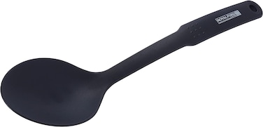 - <li>Very versatile cooking tools don't get much more versatile than this. It's ideal for stirring, serving and baking. And because it won't scratch, it's great for removing that last little bit of mashed potato or gravy from the pan. Thanks to its heavy duty nylon design, this spoon won't discolour or absorb odours. This makes it ideal when you're cooking with strong or colourful ingredients, such as blackberries and cinnamon.<li>Anti scratch design looking for utensils that work with non stick pans? royalford professional's nylon tools are ideal, as they're gentle on all kinds of pans and won't scratch non stick coatings. The simple, but the beautiful design gives this serving spoon the ability to be the best among easy usage and practicality in the dining room.<li>Durable and heat safe this cooking spoon is made of sturdy, heat resistant nylon, so it's great for stirring hot pans of soup or scooping up servings of sauce. It's heat safe to 210 degrees celsius, so you don't have to worry about it melting. Not only that, but it's resistant to stains and odours, so it's really easy to clean.<li>Ergonomic handle, easy storage when you're cooking a big family meal, short, stubby utensils just won't do. This spoon has an extra long handle that reaches right down into deep pots and keeps you safer when working with hot oil. This nylon handle is smooth, easy to grip & shaped perfectly to fit into the hand and has a hanging hoop at the top of the handle. Simply hang off a hook or hanging rack to store it in easy reach for next time.<li>Serve with style masterfully crafted and visually enhanced with good quality nylon material, this cutlery is ideal and practical for every scenario in the dining room. Serve your meals in style with this gorgeous piece of cutlery designed to be beautiful while serving, but also remain effective and easy to use.