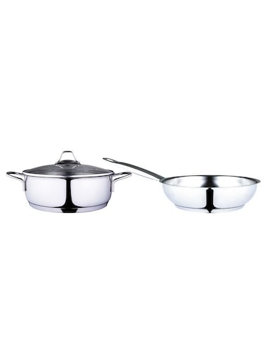 COOKWARE SETS: Sauté Pan is 9.45 in, 85 oz. The ideal depth makes it perfect cooking pan just about anything and to use daily. It is easy to store and to move on the stove. The lid fits tightly that makes it perfect for steaming rice. Frying Pan is 9