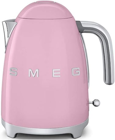 Smeg KLF03PKUK Retro Style Kettle, Water Level Indicator, 360 Swivel Base, Anti-Slip Feet, Soft Opening Lid, Stainless Steel, 3000 W, 1.7 Litre, Pink