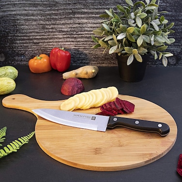 - <li> HIGH QUALITY BUILD: This classic utility knife is made from high quality stainless steel. And the sharp blade will allow you to cut your food effortlessly for a long time, and the knife is finely honed for long lasting sharpness. Easy to re sharpen, clean and maintain.<li> ERGONOMIC HANDLE, EFFORTLESS CUTTING AND SLICING Ergonomic design ensures a comfortable grip and is effective in reducing wrist fatigue, ensuring ease of movement.<li> EASY CLEANING, EASY STORAGE You can wash it after every use and do not have to worry about damaging it. The knife have a compact design which makes it easy to store. You can keep them in a knife holder or in cabinets as they do not require much storage space.<li> EXTRAORDINARY CUTTING PERFORMANCE This professional kitchen Knife features an Ultra Sharp stainless Steel Blades, producing extraordinary cutting performance & edge retention. Perfect balance between blade sharpness and toughness.<li>*Royalford Utility Knife All Purpose Small Kitchen Knife Ultra Sharp Stainless Steel Blade, 6 Inch Cooking Knife with Ergonomic Handle, Chef Knife, Suitable for Home and Restaurant