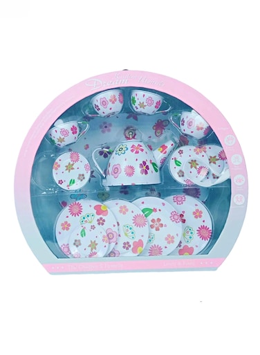- <p><li>Small and stylish teapot set with cups and plates<p><li>Comes with a beautiful case for easy storage<p><li>Unlike other plastic or ceramic tea sets, this set is made of metal iron that wont break easily and also has long lasting coating<p><li>Multicolour