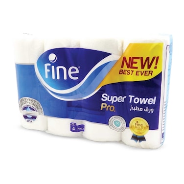 Fine Super Towel Pro Highly Absorbent Kitchen Paper Towel 3 Plie Roll White 4 Count