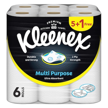 Kleenex Multi Purpose Kitchen Tissue Paper Towel, 2 PLY, 6 Rolls x 40 Sheets, Absorbent Towels for all Surfaces
