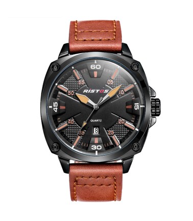 Brand: Ristos, Strap Color: Brown, Case Color: Black, Dial Color: Multicolors, Display Type: Analog Watch, Watch Shape: Cushion, Band Material: Leather, Model Number: 93003-CF