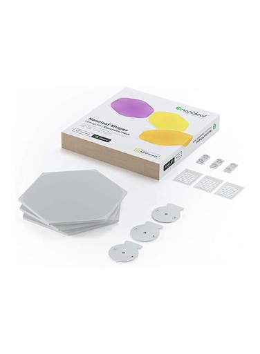 Nanoleaf Pack Of 3 Hexagon Shapes Smart WiFi LED Panel System With Music Visualizer, White, 23 X 11.4 X 20cm