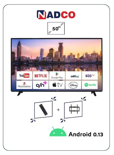 Nadco 50 Inch Ultra HD 4K UHD Smart TV With Remote Control And Free Wall Bracket, NC-50T4K, 2022 Model