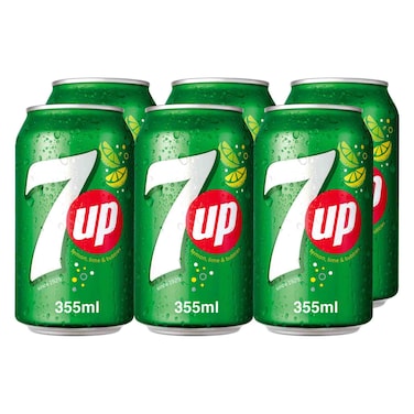 7UP, Carbonated Soft Drink, Cans, 355 ml x 6