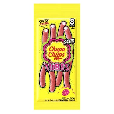 Chupa Chups Sour Soft And Chewy Tubes Strawberry Flavour 80g
