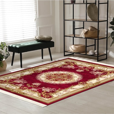 In House Velvet Turkish Rectangular Decorative Carpet - Red - 120x80cm
