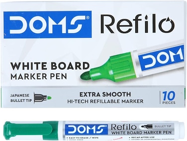 DOMS White Board Marker Pen Chisel Tip, Green Colour, Pack Of 12 Piece