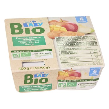 Carrefour My Baby Bio Apple Carrot Mango Fruit Compote 100g x Pack of 4
