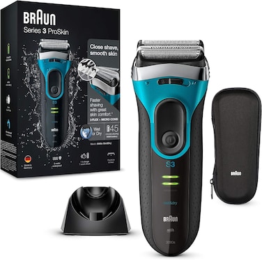 Braun Series 3 ProSkin 3080s Rechargeable Wet & Dry Electric Shaver Plus Charging Stand, Premium Blue