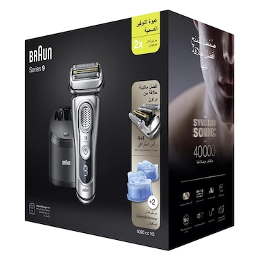 Braun Series 9 Wet & Dry Electric Shaver Special Edition With Clean Charge Station Leather Travel Case + Ccr 2, Silver (9390VS CCR)