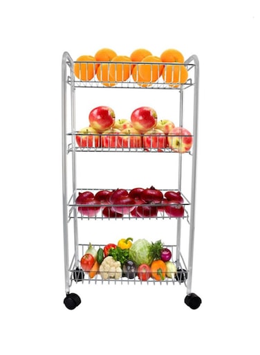 Almufarrej 4 -Tier Fruit And Vegetable Storage Trolley Cart Silver 80x43x30cm