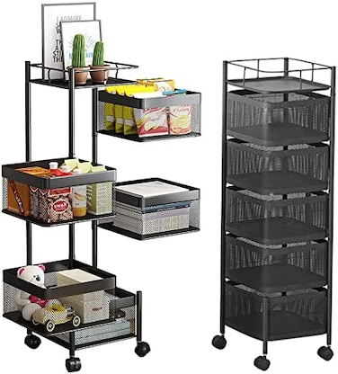 Botabay Rotating Multi-Layer Kitchen Storage Shelf, 5 Tier Square Storage Rack With Wheels, Fruit Vegetable Storage Basket, Movable Household Storage Rack For Kitchen Living Room Bathroom Toilet