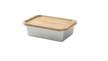 - Tight-fitting lid which keeps food fresh and preserves aromas and flavours. The natural bamboo creates a warm and vibrant look. Bamboo is a durable and stable hardwood with a uniform texture. It is moisture and scratch-resistant. The natural color of bamboo is similar to that of beech wood. The lid can also be used as a coaster and withstands temperatures up to 100°C. Wash this product before using it for the first time.