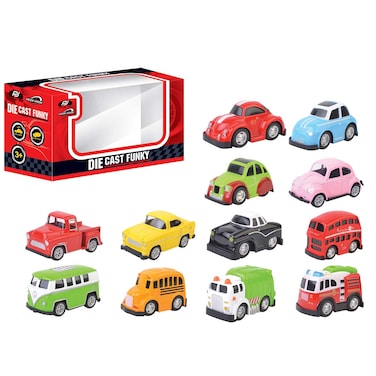 Power Joy Vroom Vroom Die-Cast Funky Car Set Multicolour Pack of 12