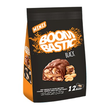 Boombastic mini black bar rice with crackers , caramel peanuts & milk covered chocolate 138 g x 12