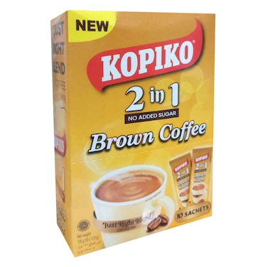 Kopiko 2 In 1 No Added Brown Instant Coffee 13.5g × Pack of 10