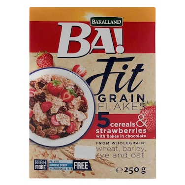 - Fuel your body with quality ingredients and start your day on a high note with Bakalland BA! Fit Strawberries Grain Flakes.