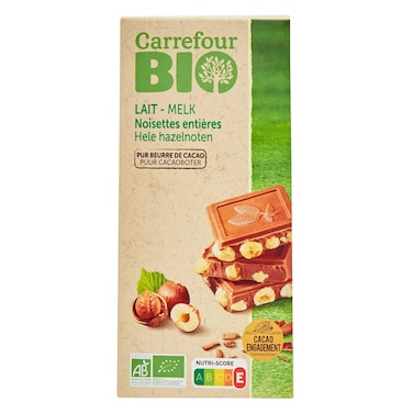 Carrefour Bio Whole Hazelnuts Milk Chocolate Bar 184g