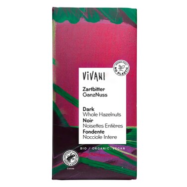Vivani Organic Dark Whole Hazelnuts Chocolate Bar 100g