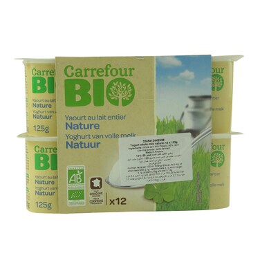 Carrefour Bio Whole Milk Natural Yogurt 125g X 12