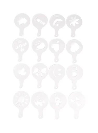Generic 16-Piece Coffee Art Stencil Set -Silver