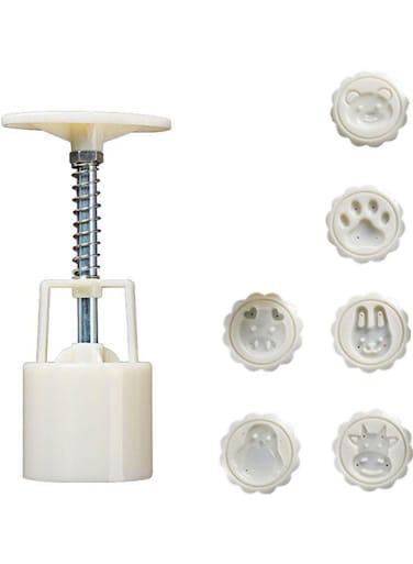 Generic Mid-Autumn Festival Moon Cake Making Mold With 6 Stamp White/Beige/Silver 14 X 5 X 5cm