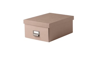 The size is ideal for everything from paper and media accessories to shoes and clothes. The box fits in the HAUGA storage series and the IDANÄS storage series, but also in other furniture with shelves that are at least 25 cm deep. You can decide which side of the box you want to place the handle with label holder on. The label holder makes it easy to mark and find what you are looking for