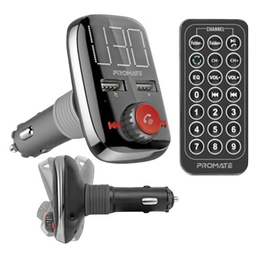 Stream music & calls to your car stereo with this exceptional multi-function car kit with FM transmitter: smarTune-3. Just plug it into your car lighter socket, and you are ready to go. Engage in call function with the hands-free function along with the built-in mic. smarTune-3 provides multiple connectivity options. Play your favourite tracks via USB flash drive, microSD Card or simply via Bluetooth. The remote control adds on to the functionality, providing utmost convenience. Moreover, smarTune-3 also features dual USB charging ports that allow you to charge your smartphones & small tablets while driving. Features Stream Music and Calls Through Your Car Speakers: This is an FM transmitter that transforms your smartphone or tablet into an FM Transmitter, so you can enjoy a wide range of music heard through your car's much louder and clearer speakers. Listen to your music, podcasts or audiobooks in style using the Promate SmarTune-3. Plug and Play: No wires, no installation and no mess.